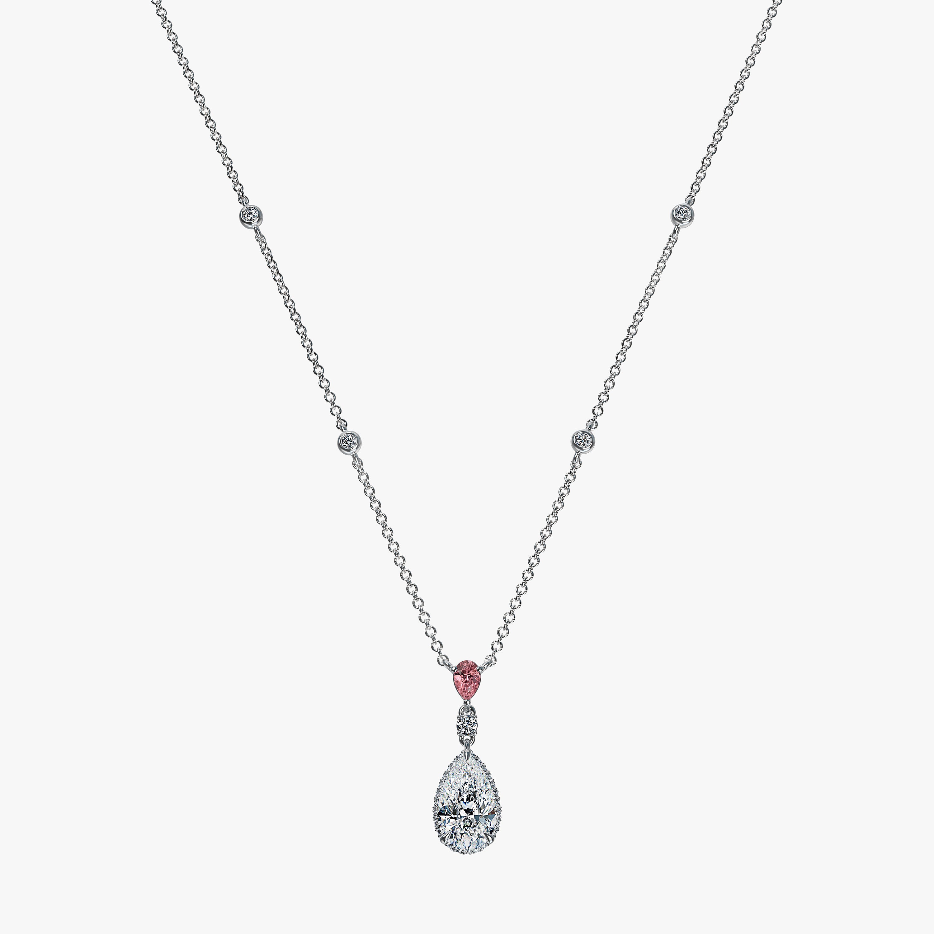 J'EVAR 18KT White Gold By the Yard Invisible Halo ALTR Lab Grown Pink Pear Diamond Necklace Front View